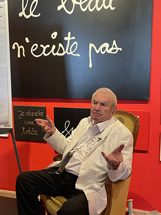 Il s’intéresse à ceux qui émergent, ne craint pas les remises en question. Il a tout digéré depuis le début du vingtième siècle : Dada, Duchamp, Fluxus, le Nouveau Réalisme, la Figuration Libre, le Street art, etc… Durant plus de soixante-dix ans, il n’a cessé de peindre, de sculpter et d’assembler des objets et des idées.