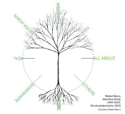 Cette exposition confronte le spectateur à deux ensembles de l’oeuvre immense de Robert Barry, figure de proue de l’art minimal et pionnier de l’art conceptuel : une rétrospective d’oeuvres murales en sept pièces de 1978 à 2023 et une rétrospective de ses pièces sonores réalisées entre 1976 et 2022.