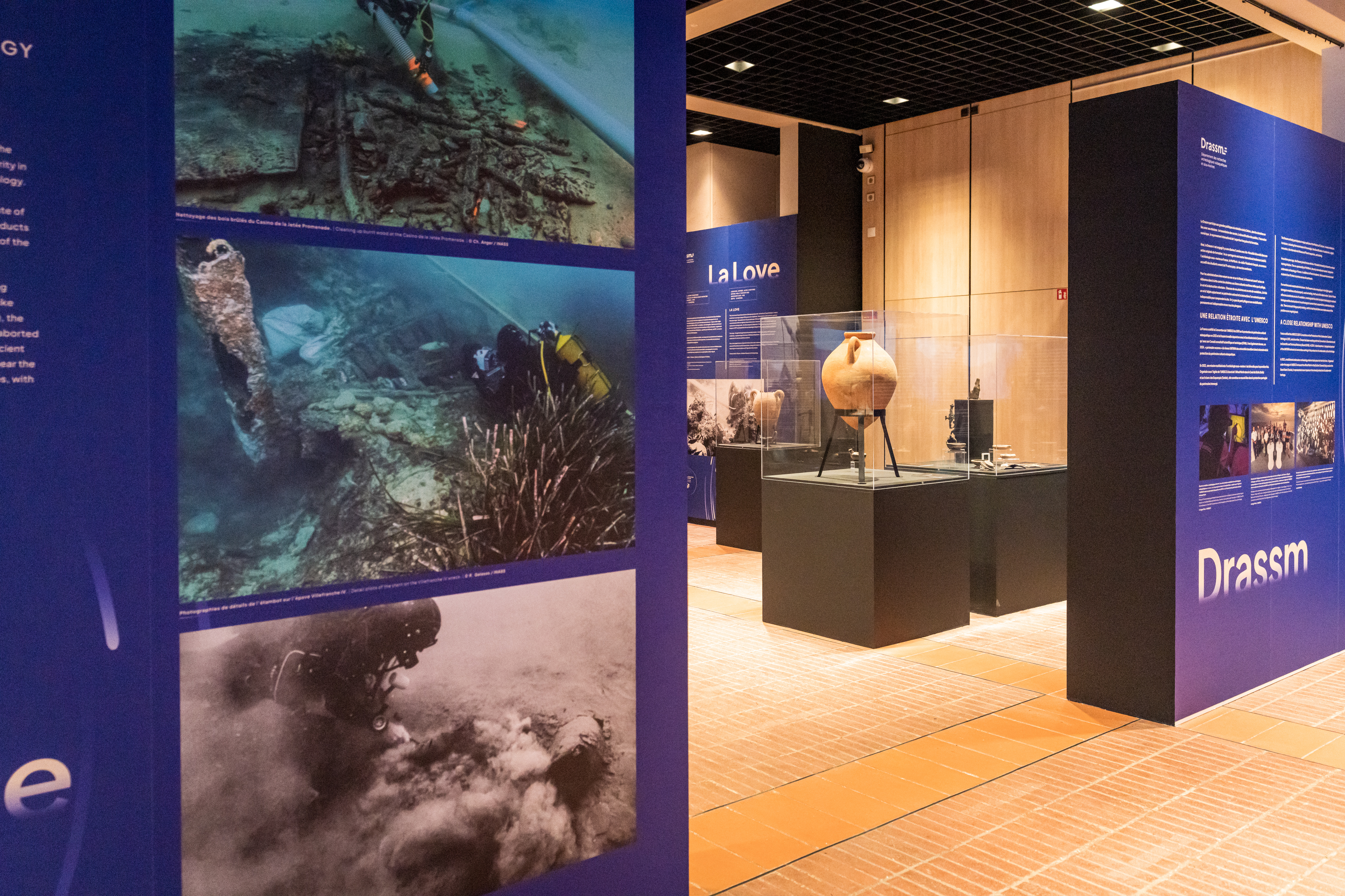L’exposition documente grâce à de nombreuses photos et de films plusieurs épaves de différentes époques. La plus ancienne, celle du « Lequin 1A », retrouvée au large de Porquerolles, est datée de 515 avant notre ère. Cette épave archaïque contenant plus de 2000 coupes décorées, transportées depuis la Grèce et la Grande-Grèce, dans un système de stockage inédit, éclaire les débuts du commerce grec en Méditerranée occidentale.