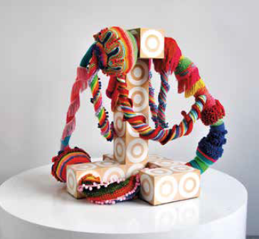 Le fil s’enroule ou se tricote. On retrouve déjà des objets enveloppés de textiles dans les cultures anciennes, de l’Egypte Antique à la culture vaudou.