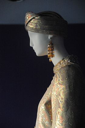 Des robes du soir, des bijoux, des photographies et un film retraçant les moments forts de la carrière d’YSL, notamment l’histoire du parfum Opium, dont le seul nom déclencha un scandale à l’époque. Avec le couturier, on rêve de la Chine et de ses empereurs, des femmes indiennes coiffées de turbans agrémentés d’aigrettes, de boutons-bijoux. Puis on est transporté au Japon, le seul pays qu’Yves Saint Laurent a vraiment visité. Avec les kimonos des courtisanes de Tokyo ou les tenues du théâtre kabuki qu’il a