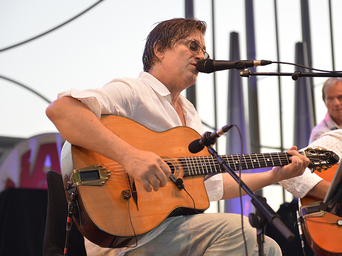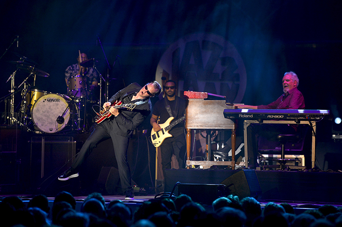 Le lendemain (le 11), tandis que toutes les nuances de gris s’installaient dans le ciel et sur la mer, l’ambiance était sweet pour la guitare de Matthis Pascaud et la voix suave légèrement éraillée du crooner anglais Hugh Coltman. Ensuite, le même soir, Joe Bonamassa met le feu avec sa guitare électrique : son groupe fait vibrer la pinède et enthousiasme le public avec un programme que semble connaître fort bien tous ses admirateurs. Et ils sont nombreux !