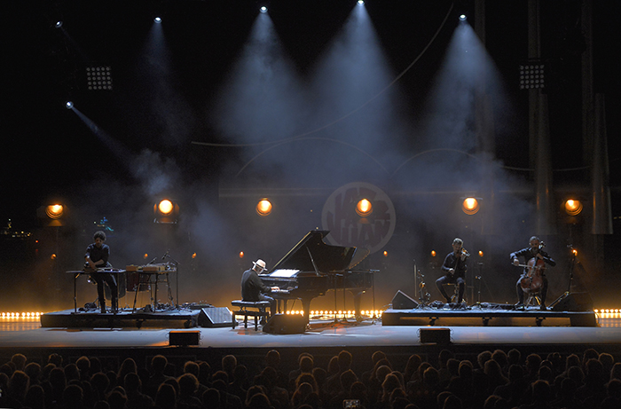 Le 15 juillet était vraiment dédié aux véritables amateurs d’un Jazz authentique ! Le trio Brad Mehldau, déjà venu deux fois à Juan, réunissait Larry Grenadier à la contrebasse et Jeff Ballard à la batterie autour du piano bien jazzy de Brad Mehldau, tandis que les cris des mouettes se mêlaient à la musique aux influences variées. Ensuite, le Branford Marsalis Quartet – également venu deux fois à Juan – réunissait, autour du célèbre saxophoniste (et aussi clarinette), Joey Calderazzo au piano, Eric Revis à la basse, et Justin Faulkner à la batterie, pour un jazz pur et dur comme on l’aime : un vrai de vrai, bien authentique !
