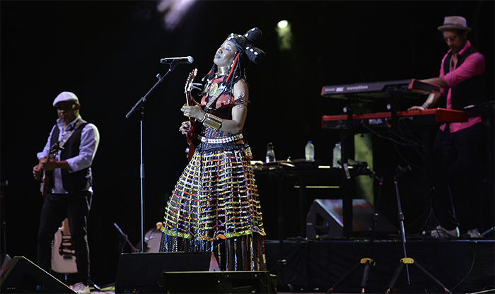 Une soirée féminine avec trois grandes dames africaines de la chanson : Imany ensorcelle les spectateurs de sa voix grave qui mêle puissance et gravité, tout en ajoutant une véritable chorégraphie avec les huit violoncelles qui l’accompagnent. Pleine d’un indiscutable talent, la célèbre Angelique Kidjo ajoute au jazz américain des sons traditionnels africains de son enfance au Bénin. Puis, dans une tenue incroyable, arrive sur scène Fatoumata Diawara : un collier de girafe pour allonger son cou, une immense coiffure invraisemblable, des vêtements étranges et un merveilleux sourire ! Elle joue aussi de la guitare, tandis que quatre musiciens accompagnent son chant envoûtant.