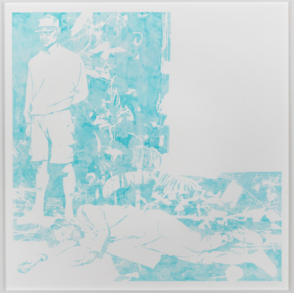 Une peinture murale et une dizaine de dessins sont réunis au sein d’un même accrochage. Toutes ces oeuvres, à des degrés divers, orchestrent