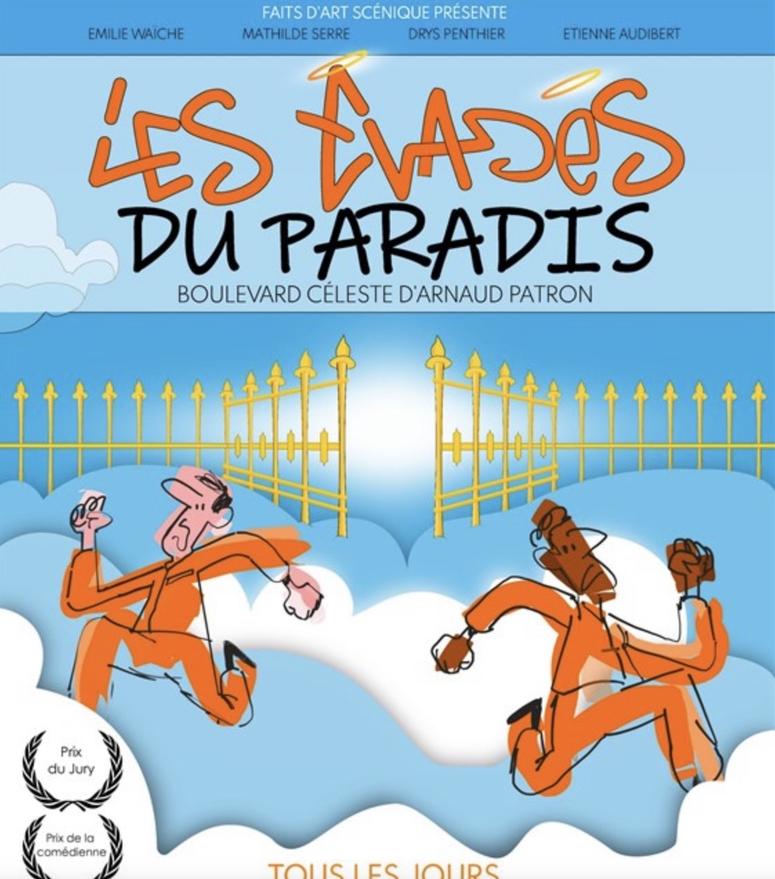 Un paradis loufoque d’où deux énergumènes tentent de s’échapper, tant ils s’ennuyaient. Un est décidé, l’autre moins, mais s’échappe-t-on du paradis ? Et comment ? Les dieux se critiquent entre eux, se battent presque et font tout pour empêcher les évadés de réussir.