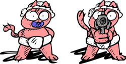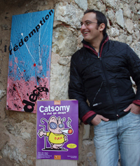 ainsi qu’à Londres. Il crée il y a quelques années le personnage de Catsomy, chat rose et méchant, qui