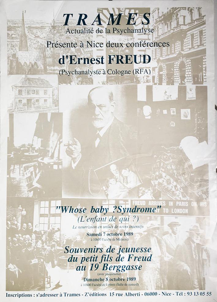 Ps : j’ai un souvenir personnel lié à cette histoire. J’étais alors éditeur et publiais la revue de psychanalyse Trames. Elisabeth Geblesco, Francine Beddock, Jean-Louis Meunier et l’équipe de rédaction avaient invité à Nice Ernst Freud, le petit-fils de Sigmund (l’enfant à la bobine) pour une conférence.