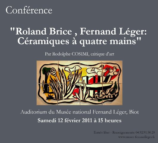 CONFERENCE : "Roland Brice, Fernand Léger : céramiques à quatre mains" - Auditorium du Musée national Fernand Léger Biot, le Samedi 12 février à 15 heures