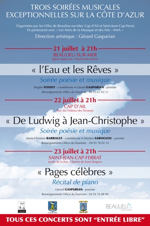 Le public est invité à une « croisière » méditerranéenne, à travers la Grèce, l’Italie (Les collines d’Anacapri, Les danseuses de Delphes de Debussy, la Barcarolle de Chopin), et les côtes normandes (La cathédrale engloutie du même Debussy).
