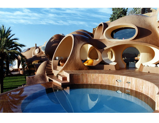 A quelques minutes de Cannes, le Palais Bulles est un lieu futuriste surplombant la mer, conçu par l’architecte Antti Lovag, une maison bulles de couleur ocre qui s’intègre parfaitement dans le site et se fond avec les couleurs des collines de l’Estérel.