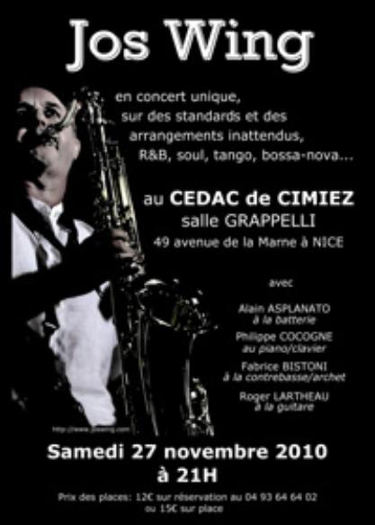 Jos Wing se produit dans un répertoire minutieusement choisi dans la vaste gamme des géants des années swing. « Jos » a aussi une énergie rythmique délirante propulsant sa musique sur les plus hautes cimes.