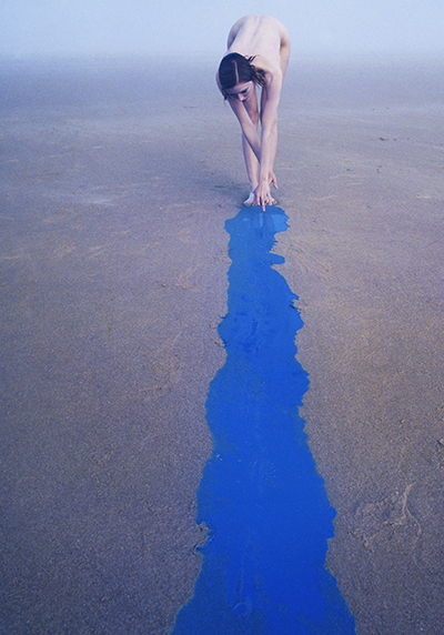 Cette pratique était plutôt rare à l’époque. Nous reconnaîtrons le visage d’Ines de la Fressange, concentré dans ce qui ressemble à un petit miroir de poche. Il l’avait emmenée pour un "shooting" sur une plage de Dunkerque, loin du glamour des plateaux et des beaux hôtels, par temps de froid humide, ce qui ne devait être guère confortable pour le mannequin de Chanel qui s’était pourtant prêtée au jeu. C’était en 1987.