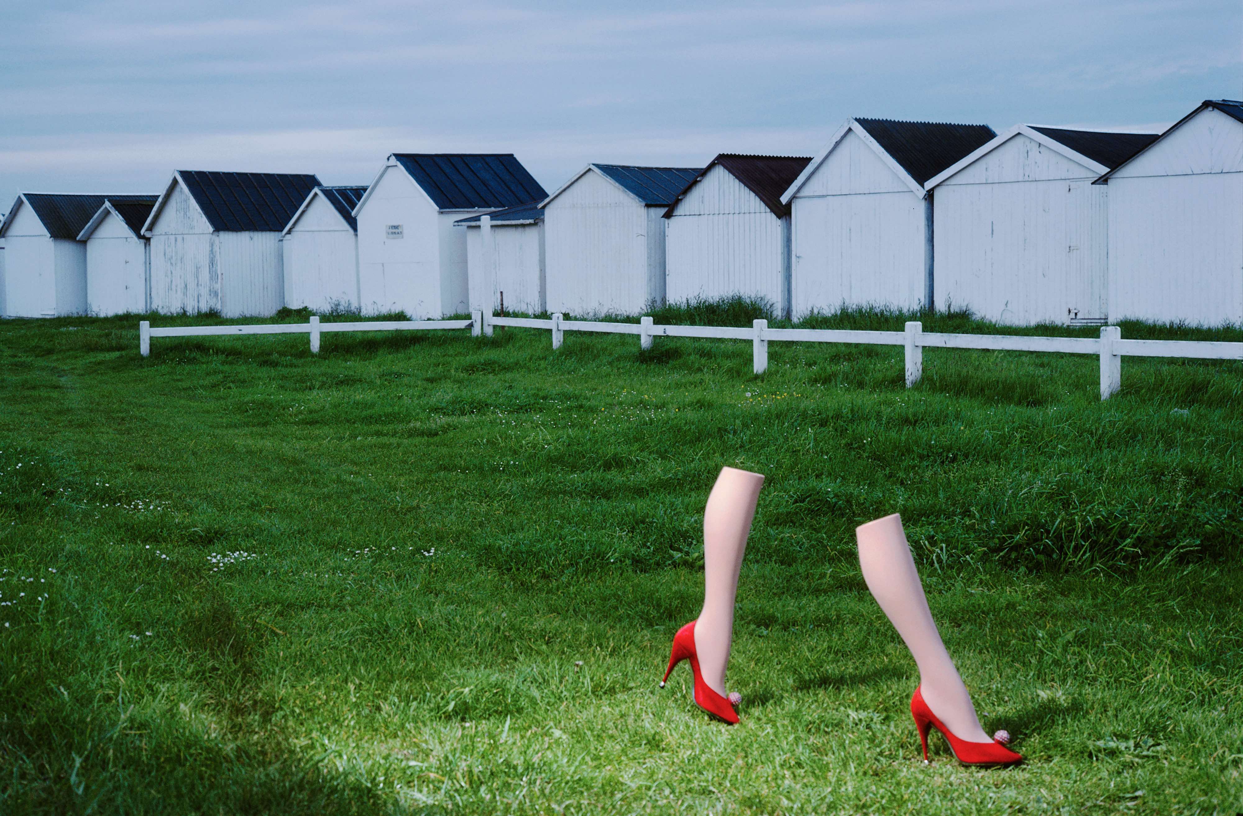 Ses déconcertantes publicités pour les chaussures Louis Jourdan se résument à des paires de jambes factices, élégamment chaussées sur fond de clôtures de fil de fer et terrains vagues, du plus bel effet surréaliste.