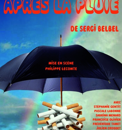 Toxicomédie décapante (Molière 1999) - Argument très actuel autour de l’interdiction de fumer dans les lieux publics. L’action se déroule sur la terrasse d’une tour de 49 étages. Plusieurs entreprises occupent l’immeuble et interdisent à leurs employés de fumer à l’intérieur du bâtiment. La terrasse est donc le lieu où, des secrétaires aux chefs de services, tous viennent en cachette, braver les interdits de fumer la « divine et si attendue » cigarette. Ce lieu devient progressivement l’endroit de tous les fantasmes : des rêves de meurtres ou de suicides succèdent à des scènes de séduction, parfois cocasses. Seule la pluie, qui n’est pas tombée depuis plus de 2 ans va délivrer les personnages de leur propre sécheresse : sécheresse de la sensibilité, de la solitude ou encore celle du cœur. Un orage éclate à la fin de la pièce. Le rythme s’accélère. Entre coups de tonnerres et éclairs, les passions se déchaînent et font naître une fin quelque peu surréaliste.