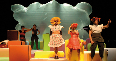De ce célèbre roman de Boris Vian, capable de faire revivre les fièvres et les insouciances adolescentes, Béatrice de La Boulaye en a fait un spectacle à la théâtralité toute musicale, écrit comme un Jazz-band. Sa partition joue un « swing » à trois temps pour mieux coller au rythme du roman : le premier, ludique et insouciant ; le second avec le mariage comme point culminant, et le troisième, mouvant, rétrécissant et angoissant. Le tout habilement interprété par des comédiens et un bruiteur habillés en costumes de carton-pâte, tout droit sortis d’une boîte de Playmobil ou d’un dessin animé. Il y a là d’énormes baudruches en forme de nénuphar et de corail, de la matière imaginaire, marine et résiduelle, des cubes multicolores. Tout le contraire d’un roman noir, et c’est tant mieux. Car l’histoire de L’écume des jours est entièrement vraie, puisque Boris Vian l’a imaginée d’un bout à l’autre...