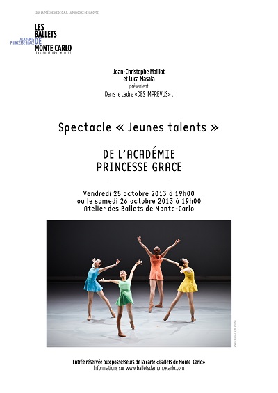 D’une part, l’Académie Princesse Grace met en avant ses "Jeunes Talents", dans le cadre des imprévus (25 et 26 octobre à 19h à l’Atelier des Ballets de Monte-Carlo).