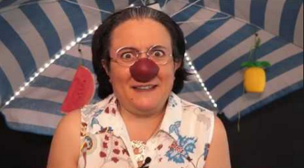 Bienvenue dans les Paradis fiscaux. Catherine Arditi en clown à gros nez rouge détaille les multiples procédés des experts pour détourner l’argent.