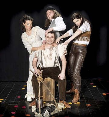 Une pièce folle, déjantée au style « Café de la Gare » des années folles (celles des années 70), d’ailleurs, le grand Romain Bouteille y a mis sa patte et bien plus. Quatre comédiens (deux filles, deux garçons) nous entraînent dans une ronde folle où on ne sait plus qui dit la vérité, qui manipule qui, qui a raison ou tort… Un juge à cheveux longs, une bourreau avec des pinces électrifiées, une jolie et fine avocate et un docteur trouble porteur d’une malette, tueur de vieux (mais pas que). Des personnages improbables portés par des acteurs-chanteurs énergiques. La religion, la justice, le droit, la vérité sont joyeusement bafoués dans une course à la recherche de ce « tueur de vieux » qui s’avère être… Mais on s’en fiche un peu du vraisemblable et de la morale (totalement dépassée) et même du dénouement. Ces quatre acteurs nous font passer pour notre bonheur sans transition du burlesque au caustique.