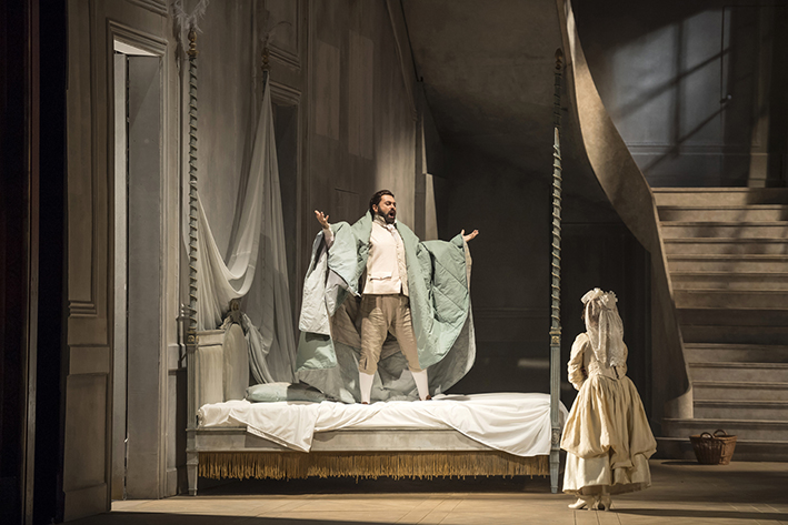 Veronica Granatiero est une comtesse altière, tandis que Valérie Condoluci interprète Susanne. Dans le rôle de Chérubin, la puissance et l’aisance vocales de la mezzo Svetlina Stoyanova a provoqué un tonnerre d’applaudissements. Pour les hommes, Luigi De Donato est un parfait Figaro et Jean-Luc Ballestra un magnifique comte Almaviva. Dans la fosse, le récent directeur musical de l’Orchestre Philharmonique de Nice, György G. Rath mène magistralement cette nouvelle production. Le vieux (Anthony Ballantyne) et le jeune Chérubin saluent ensemble, seul et même personnage.