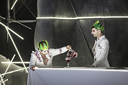 Outre la mise en scène insolente et bluffante, mélange de tradition et de modernité fantastique, Thomas Jolly sera donc présent sur scène dans le rôle de l’abominable Atrée. C’est un immense défi que d’interpréter ce monstre qui fréquente les recoins les plus abominables de l’âme humaine, mais il prouve qu’on peut jouer l’injouable.