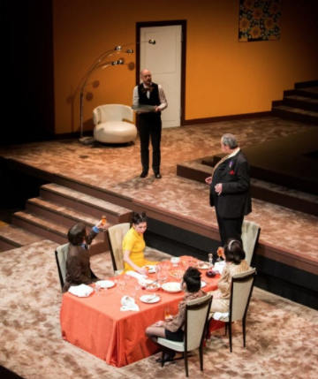 Car, les comédiens s’en donnent à coeur joie en tirant vers la farce burlesque. On pourrait les citer tous, ces comédiens de la troupe du TNN qui excellent dans un allègre et hilarant numéro d’ensemble : Frédéric de Goldfiem s’est octroyé un gros ventre de nanti suffisant, Pierre Blain joue un docteur abruti à souhait et sa femme, Sophie de Montgolfier (méconnaissable), expose sa solitude conjugale. Toutes gourdes qu’elles paraissent, Pauline Huriet et Eve Pereur, épouse et fille de Pacarel, sont manipulatrices à souhait. Avec un pied de nez potache, l’excellent Jonathan Gensburger s’est fait une coiffure digne de Riquet à la Houppe. Quant à Félicien Juttner (texte à la main pour remplacer au pied levé Augustin Bouchacourt, victime du vilain virus), il offre des grimaces dignes du meilleur de Funès. C’est à pleurer de rire !