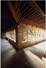 Le cloître fait partie d’un ensemble épiscopal élevé entre le XIe et le XIVe siècle à l’emplacement de l’antique cité fondée par Jules César en 49 avant notre ère. L’église cathédrale Saint-Léonce comporte un magnifique baptistère, qui a conservé une cuve du Ve siècle pour le baptême par immersion. C’est l’une des plus anciennes de France. Le cloître abrite un plafond peint en bois, exemple unique de peinture médiévale présentant un exceptionnel bestiaire d’animaux fantastiques.