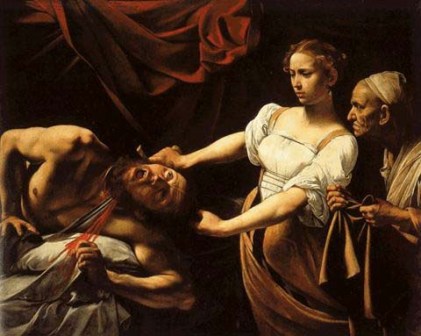Peu intéressé par les sujets religieux, mais les commandes étant pour la plupart à l’époque celles d’institutions ecclésiastiques ou de grands bourgeois aimant s’entourer de thèmes religieux, Le Caravage a extrait de la Bible les scènes les plus violentes : Judith zigouillant Holopherne, David exhibant la tête de Goliath, l’arrestation de Jésus, etc.
