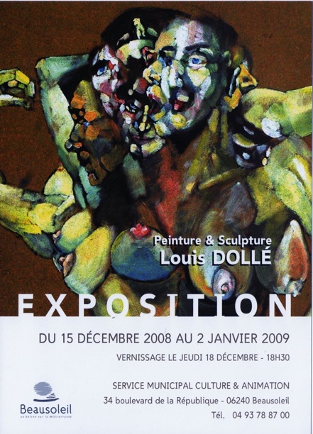 d’une sculpture, d’un dessin ou d’une peinture, elle est généralement située dans un environnement idéal. L’exposition parfaite c’est lorsque je dois adapter un de mes travaux à un environnement donné. Les statues sculptées en 1991 sur la plage de la Réserve sont officiellement ma première installation. Et je travaille toujours en public. Quand je colle un dessin sur un mur, ce n’est pas inspiré par Ernest Pignon Ernest. Comme lui, un thème ou une urgence dans le désir de représenter motive le collage sur le mur ou l’abandon de la sculpture aux éléments naturels. J’aime l’équilibre fragile, l’usure et la patine, l’éphémère. Quand aux expositions en intérieur, j’aime adapter mon travail aux vieilles pierres, aux beaux lieux ou a des thèmes forts. J’aime voir dans ma tête une de mes sculptures au bord d’un précipice et recouverte d’un peu de neige..."(Louis Dollé)