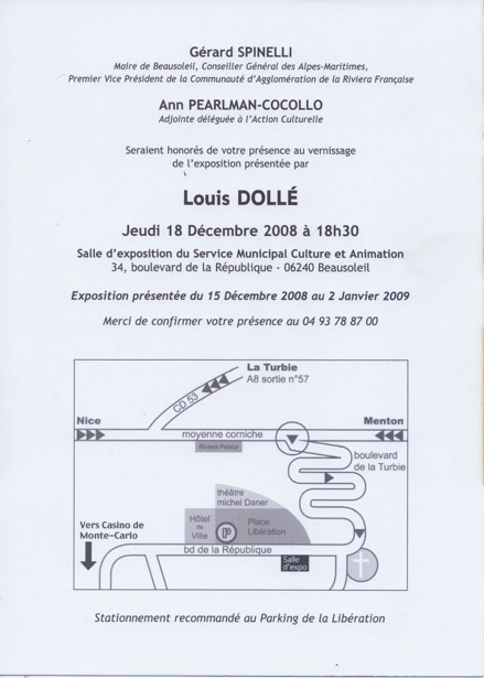 – Louis Dollé est né à Nice le 26 mai 1971, il obtient son CAP d’ébéniste en 1989 avec une formation de sculpteur, marqueteur. Il effectue parallèlement une formation en sculpture en l’atelier de Jean Cortèse. De 1990-1991 il est étudiant à l’École Nationale Supérieure des Beaux-Arts (Villa Arson). Il est une figure de l’art passionnante de la Côte d’Azur que la Mairie de Beausoleil vous invite à découvrir pour cette fin d’année.