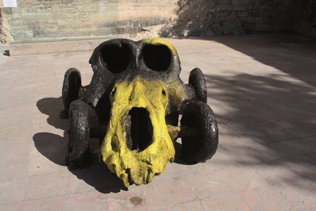 À l’entrée, sur la place du Palais des Papes, le gigantesque bronze d’un éléphant funambule en équilibre sur sa trompe.