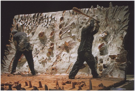 La magistrale performance (une des plus belles de tous les temps) donné par Barceló au Festival d’Avignon dans l’été 2006 ne pouvait pas ne pas connaître de suite. Dans cette performance, l’artiste et son ami chorégraphe Josef Nadj sont aux prises avec un mur et un sol de 230 kg d’argile humide. Une surface lisse à laquelle ils s’attaquent avec force, souffrance et jubilation. Avec leurs mains, leurs pieds puis avec tout leur corps et l’aide de quelques outils, ils maltraitent la matière, constituant progressivement un tableau dont ils sont partie prenante. Une œuvre en constante transformation où matière et corps transfigurent l’espace où ils finissent par s’engouffrer (par une trappe). L’artiste réalisant là son désir de traverser la toile…