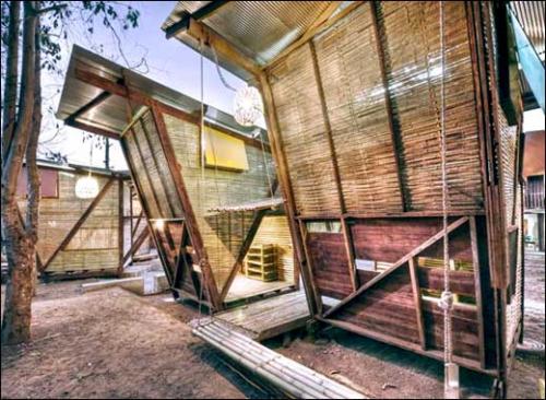 "Construire ailleurs", car cette exposition montre des projets conçus par des gens d’"ici", en Europe, pour des gens "là-bas", en Afrique ou en Asie. Là-bas, où le terme abri reprend tout son sens premier.