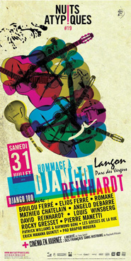 Les Nuits Atypiques rendent hommage à Django Reinhardt avec quelques uns des plus grands guitaristes d’aujourd’hui comme Angelo Debarre, Boulou ou Louis Winsberg. Autre temps fort, l’hommage rendu au poète Bernard Manciet, avec les peintures et musiques signées Christian Vieussens et la voix de Christian Loustau.