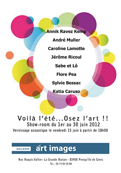 Osez L’art ! Vendredi 15 Juin 2012, à partir de 18h00 à Giens. Peintres, plasticiens, sculpteurs, maître verrier, illustrateur, photographes, neuf artistes varois réunis pour la première fois en un même lieu dévoilent leurs créations.