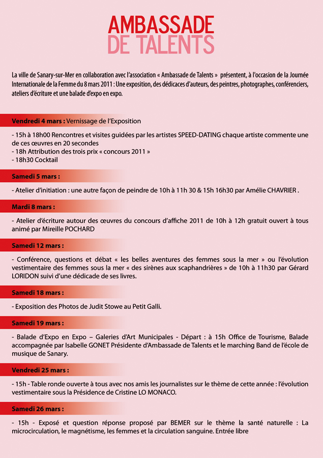 l’honneur, la ville de Sanary-sur-Mer et « Ambassade de Talents », sous la Présidence d’Isabelle Gonet, organisent