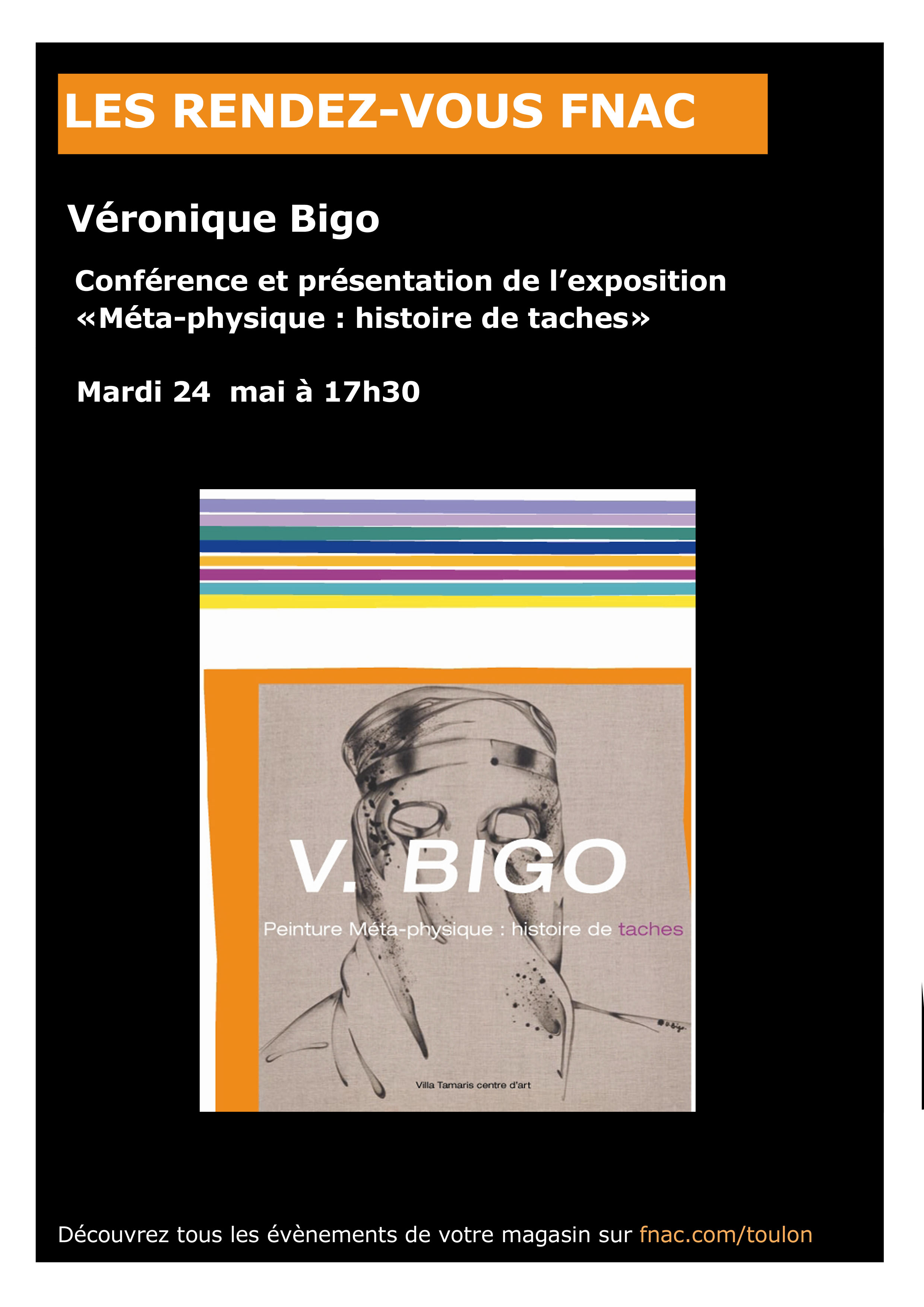 La FNAC DE TOULON vous invite à la rencontre au forum Fnac avec Véronique BIGO le mardi 24 mai à 17H30 à l’occasion de son exposition rétrospective et de la parution de son catalogue d’exposition*.