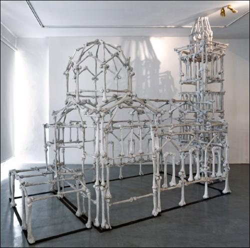 Les ossements, pris comme matériau exempt de toute morbidité, ne sont plus sous la terre mais sur la terre et construisent une autre forme de cimetière, peut-être celui de nos illusions perdues ou de notre société ?!