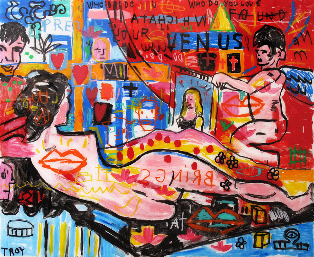 Comme nombre d’artistes contemporains, Troy est autoréférentiel dans son travail, sans
