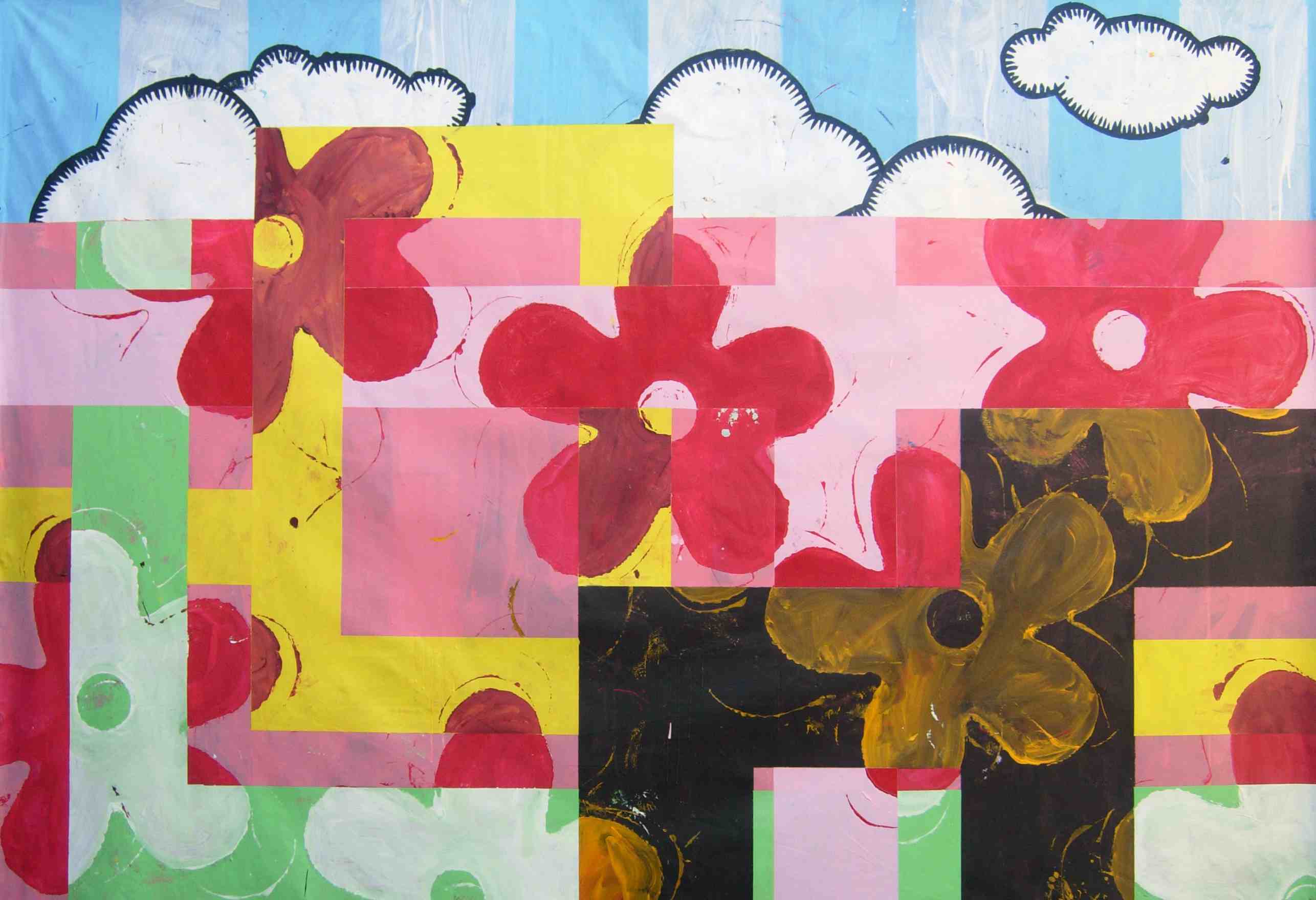 Dans cette oeuvre, l’artiste utilise la fleur, son motif récurrent,