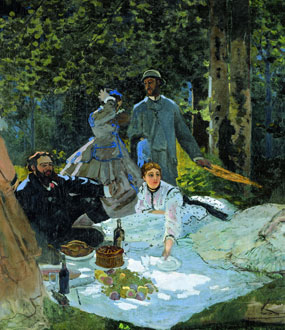 Des natures mortes aux figures, il a tout expérimenté. On regrette qu’il n’ait pas achevé son monumental Déjeuner sur l’herbe, découragé par l’ampleur de la tâche. Car les deux fragments réalisés promettaient une oeuvre somptueuse. Il croque en tout cas les petits bonheurs, guinguettes et jardins, avec une même sensibilité que les drames. L’une de ses toiles les plus émouvantes montre sa jeune épouse Camille, sur son lit de mort, auréolée d’une vapeur bleutée.