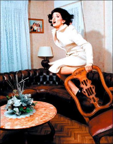 Claudia Triozzi a débuté son propre travail autour de la relation corps / objets et des stéréotypes féminins, collaborant en parallèle à des projets menés par d’autres artistes comme Alain Buffard. Créée au printemps 2002, The Family Tree porte sur les rapports entre voix et musique. En duo avec un guitariste, c’est une pièce délirante ourlée de jeux de mots, de vocalises et de visions. Dans un espace en creux cerné de rideaux blancs, agrémenté de projections d’images, délires intimes et figures ectoplasmiques circulent en toute confidence. Une pièce drôle et surprenante dont ces images gardent la trace.
