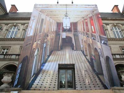 Quatre photographies monumentales, représentant des espaces intérieurs, ont été installées sur des bâtiments emblématiques de la Cité internationale universitaire de Paris, donnant ainsi l’illusion d’ouvrir les façades pour en dévoiler l’intérieur : chambre, hall, escalier, couloir.
