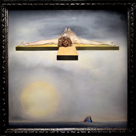 SCIENCE ET MYSTICISME. De nouvelles passions surgissent après la fin de la guerre : le mysticisme, source de nombreux tableaux religieux comme les crucifixions insolites par leurs prises de vue (« Le Christ de Saint Jean de la Croix », l’Ascension du Christ ») ou les scènes bibliques (« la Tentation de Saint Antoine 1946 ») dans une veine mystique constamment renouvelée. La science fait aussi son entrée dans les réalisations de Dali qui a fortement été marqué par Hiroshima en 1945 : ses recherches sur l’atome et l’univers cosmique engendrent une « mystique nucléaire » qui l’autorise à déstructurer la réalité comme la « tête Raphaélesque éclatée » ou à reconstituer des décors dans lesquels domine toujours sa muse Gala. Les recherches sur les trois dimensions et les images fractales l’amènent à réaliser des hologrammes et des installations qui la mettent en scène. Celle-ci, évincée dans les années 60, est remplacée par Amanda Lear qui devient son égérie et son modèle dans la période de ses ultimes productions picturales de grands formats comme « La pêche aux thons » ou le « Torero Hallucinogène ».
