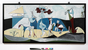 Trente ans après sa disparition, Picasso retrouve son atelier, dans la grande salle toute blanche qui a retrouvé ses dimensions d’origine. Un espace idéal pour accueillir les grands formats, comme le triptyque intitulé « Ulysse et les sirènes » (360cm de long).