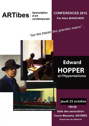 Alain Biancheri vous propose une conférence le 25 octobre à 18h30, salle des Associations, Antibes, sur "Hopper" et l’hyperréalisme américain.