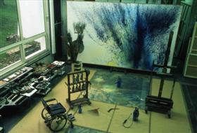 Tout près, celui d’Hans Hartung semble encore habité. Outre ses chapeaux tachés de peinture, on peut contempler les outils qu’il utilisait pour gratter, frotter, projeter de la peinture : pinceaux, brosses, balais, pistolets divers et variés. Les portes de placards, maculées de taches de peinture en épaisseur, pourraient être considérées comme des oeuvres en soi.
