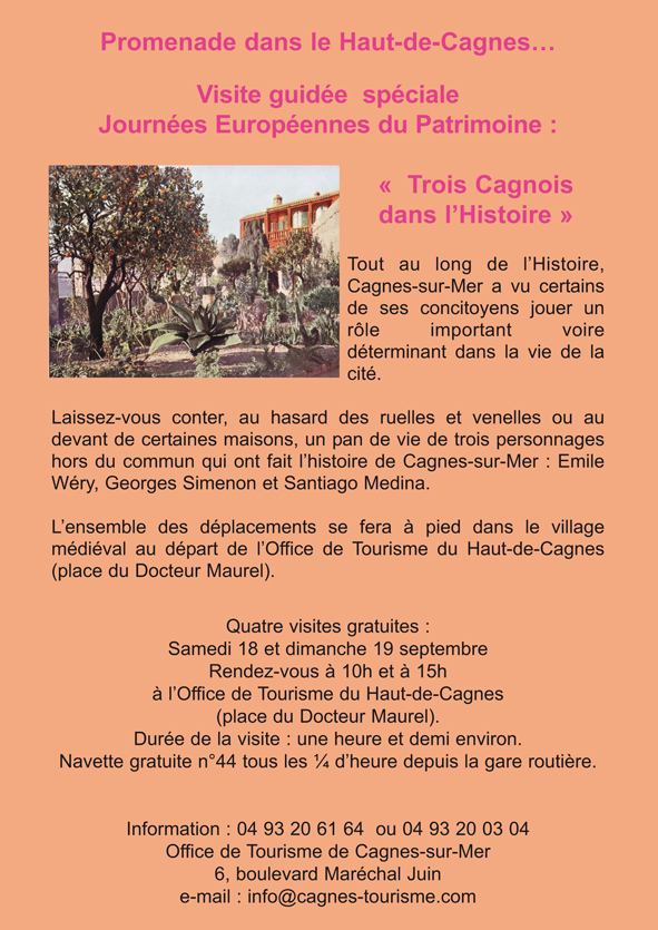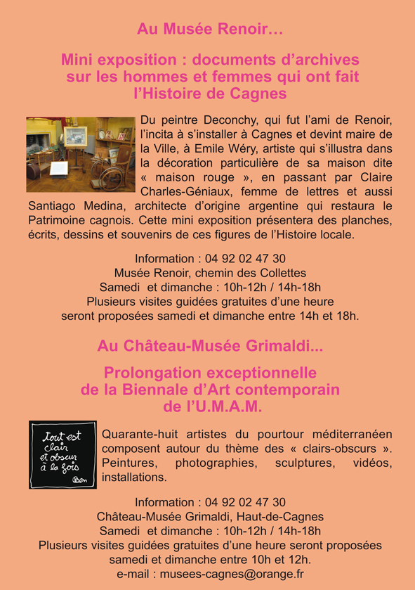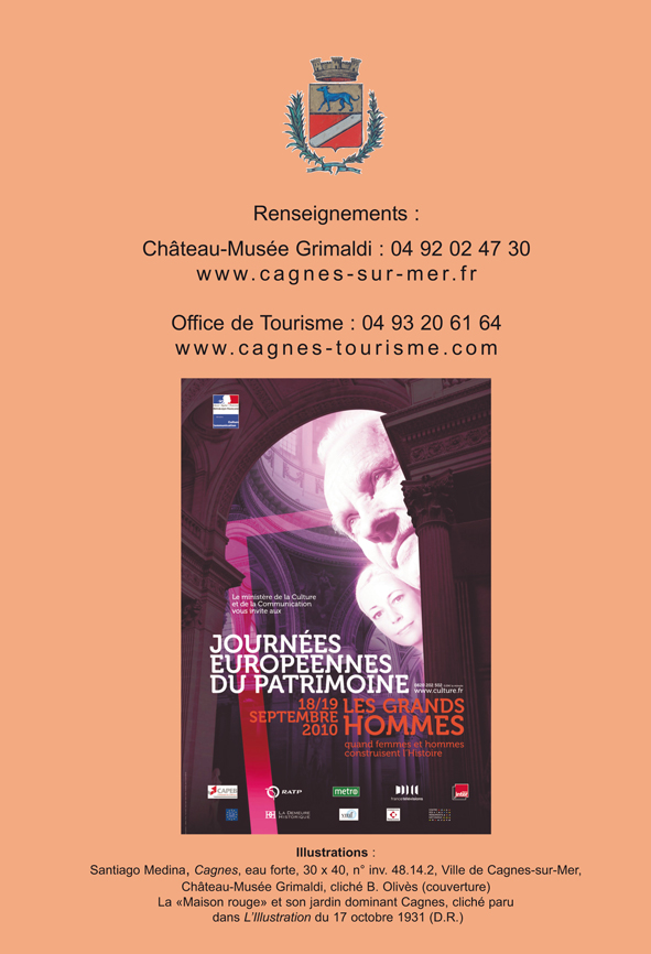 La Ville de Cagnes sur Mer vous propose de redécouvrir les richesses de son patrimoine et de ses musées à l’occasion des journées européennes du patrimoine les 18 et 19 septembre 2010 !