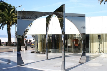 une sculpture monumentale au 65, Boulevard de la Croisette, à Cannes. Sur le parvis de cet ensemble commercial de luxe a été inaugurée « 4-Dimensional Circle », une œuvre commandée à l’artiste danois Jeppe Hein.