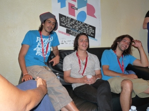Pantiero, deuxième jour. En ce dimanche soir, la folle jeunesse s’était rassemblée à Cannes pour assister au concert d’une scène composée sur mesure, avec du haut de gamme : Late of the Pier, Stuck in the Sound, Kap Bambino et les Naïve New Beaters. Baskets fluo et mèches étaient de rigueur pour cette scène. En coulisse, nous avons rencontré une belle bande de copains, drôles, simples et doués. A peine installés sur le canapé, le chanteur lance : « Bonjour, vous êtes venus pour quoi ? Bon déjà on va commencer par des questions, quelqu’un a des questions ? ». Entre joutes verbales, récits affabulés et humour décalé, les Naïve auraient presque réussi à se confier.